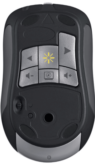 with next / previous slide, Volume up down, Play pause (for media center or WM player) and finally has a built-in laser pointer.