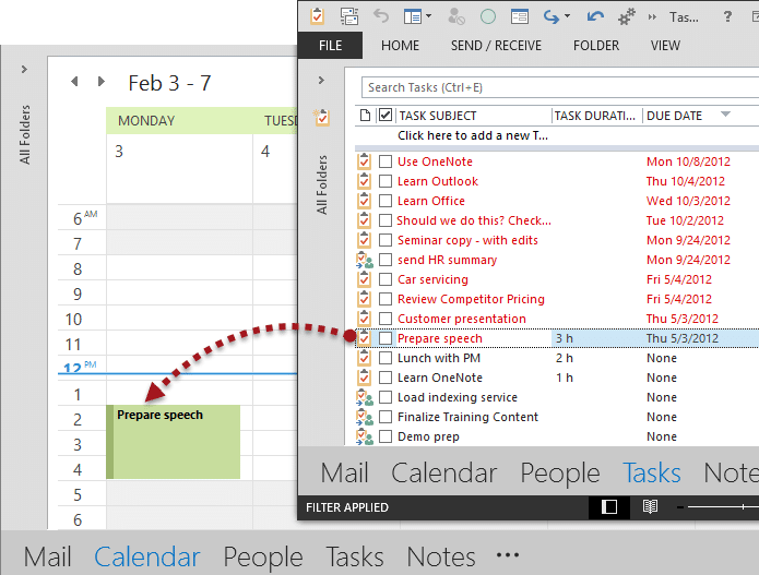 Make the Tasks window smaller so that you can see the tasks and the calendar together.