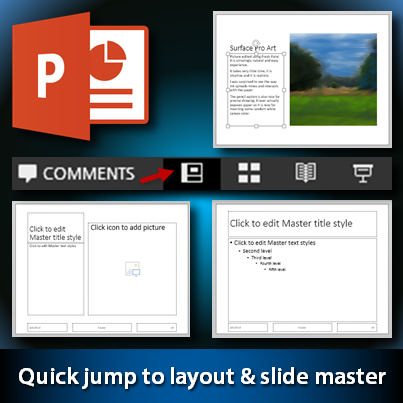 Press shift key and click again on the same icon – it takes you directly to the slide master!