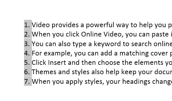 Press ALT key and then select the numbers… as shown below. Now, miraculously, Word allows selection vertically.