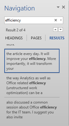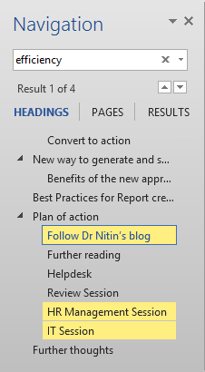 It also provides a visual indication of which topics / sub-topics do the found words fall in. This way, you can get a quick distribution of the search word across the document. I will write a separate article on this.