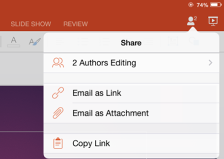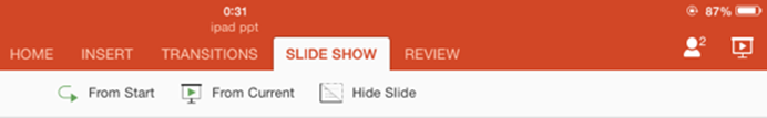 Delivering the presentation is easy. Choose Slide show menu and choose – From first slide or current slide. The run from current slide button is always visible – irrespective of which menu tab is open.