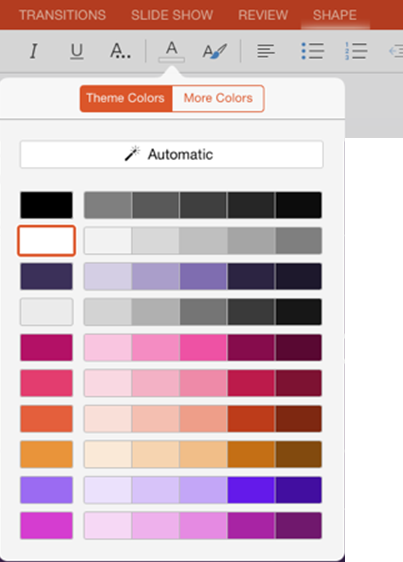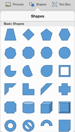 All the shapes are available. Shape styles allow you to change the Format quickly.