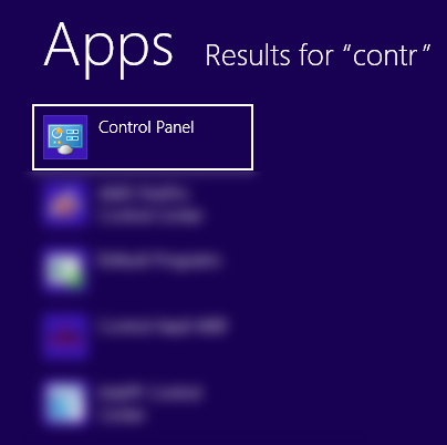 Windows 8 – just type control on the home screen. Choose Control Panel