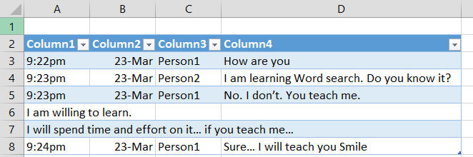 You will see that the multi-row chat entry is properly parsed into a single record.