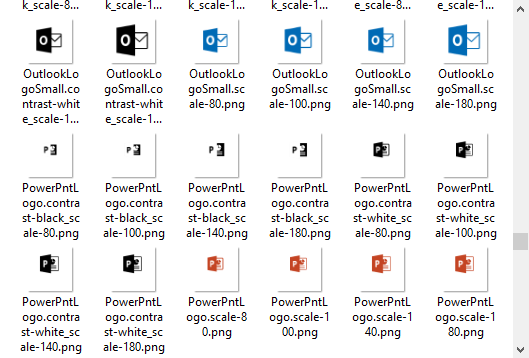 This folder contains lots of PNG files – 384 to be precise. This is a collection of all Office logos.