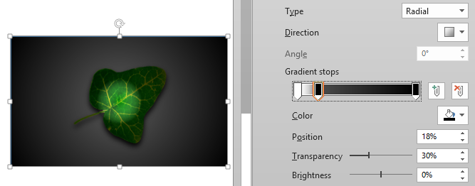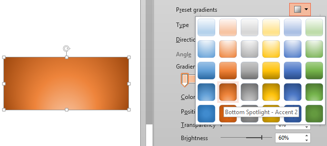 This is an important consideration while choosing the right type of gradient. A gradient which may look very impressive as a slide background may fail miserably if applied to a small shape.