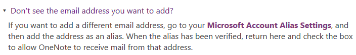 Go to this site OneNote email settings page. You will have to sign in with a Microsoft Account. If you don’t have one, create it.