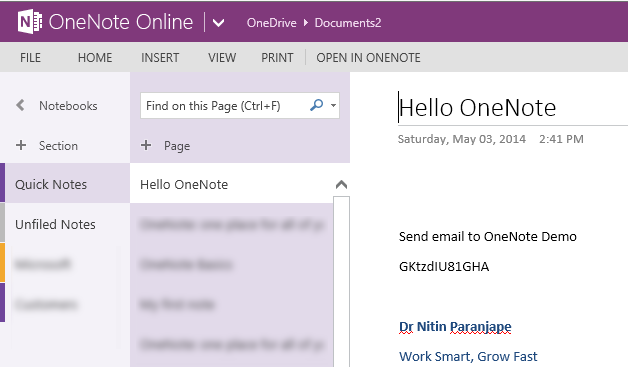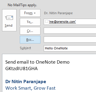 This is a new feature introduced recently. You can send a mail to that address and it will appear in your OneNote on all devices. Nice and easy. Here is how you do it.