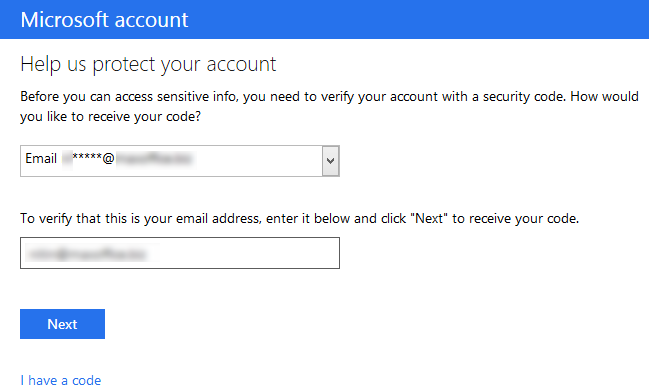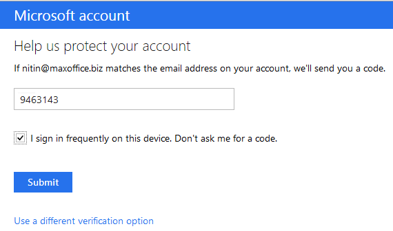Type the full email id there and click next. Wait for an email to be received – which contains the code. Copy paste the code in the textbox. Click Submit.