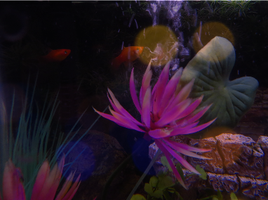 If I had dragged the fish tank image instead of dragging the lights image, the result would be slightly different… this time the fish tank becomes visually more prominent.