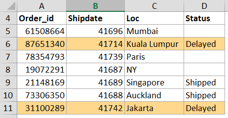If you want to check, type Delayed in D5 and see. All cells will be highlighted!