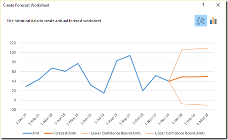 I will cover the features in more detail. But here is a very interesting feature which some of you may like. You can do forecasting very quickly using the Forecast Sheet feature of Excel 2016.